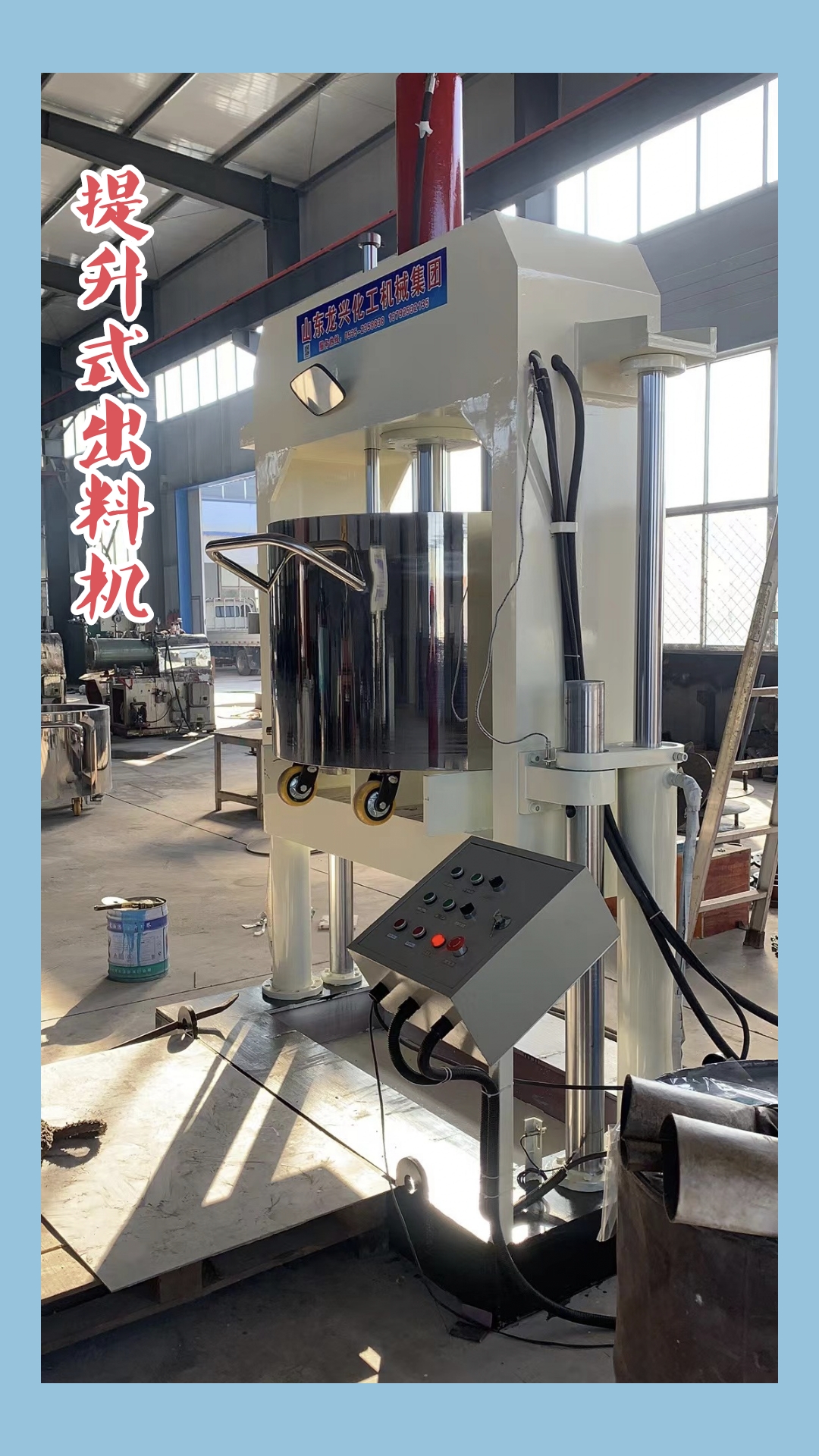 液壓出料機是與本廠出產(chǎn)的高粘度強力攪拌機相配套的出料灌裝設(shè)備。它能將相應(yīng)容積攪拌桶內(nèi)的油墨、膠粘劑、硅膠等高粘度物料通過壓料盤施壓 使物料盤上出料口或攪拌桶下出料口出料,從而實現(xiàn)對 物料各種形式的包裝