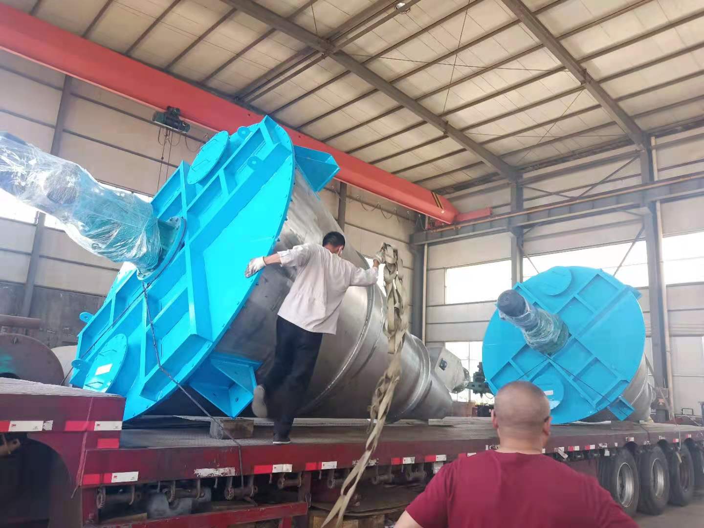 工作原理:料筒倒錐形,內(nèi)設(shè)有兩個(gè)非對(duì)稱的提升螺旋,在物料混合時(shí)兩只螺旋自轉(zhuǎn)對(duì)物料產(chǎn)生提升力,物料隨螺旋運(yùn)動(dòng)到料筒上部向中心凹陷處會(huì)合下落,填充混合機(jī)底部的物料空缺,之后再收到螺旋的提升形成往復(fù)過程。轉(zhuǎn)壁會(huì)沿筒壁呈慢速轉(zhuǎn)動(dòng)狀態(tài),推動(dòng)未進(jìn)入螺旋的物料,在不同高速上進(jìn)入螺柱,使料筒內(nèi)的物料能得到很好的混合和攪拌,加快了物料的更新和擴(kuò)散速度。